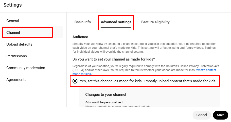 • Step 5: Yes, set this channel for children only. Most of the videos I upload are for children. Select the option and click Save.