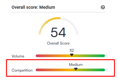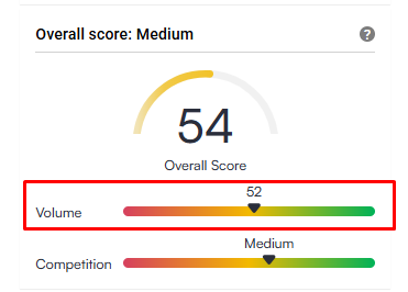 Below the SEO evaluation, the search volume and competition volume of this keyword are visible. Search volume and competition volumes express completely separate ideas.