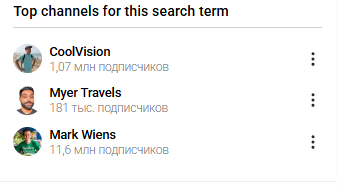 Below these indicators, you can see other YouTube channels in which the keyword you searched for is used. You can also use these channels in competitor research.