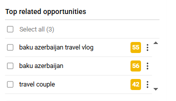 The competition indicator shows the competition of a keyword. That is, it shows how many videos have been shared with this keyword before you. Keywords with low competition and high volume can provide you with more benefit. However, do not give up on a video idea that could be very good just because a keyword has high competition. These indicators only give you possibilities related to your video.