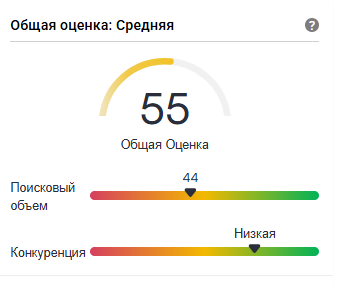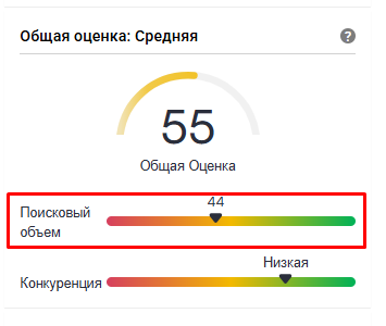 Под SEO-оценкой отображается объем поиска и уровень конкуренции по этому ключевому слову. Объем поиска и уровень конкуренции отражают совершенно разные показатели.