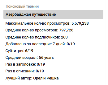 Отражает среднее количество просмотров видео, в котором использовалось это ключевое слово.