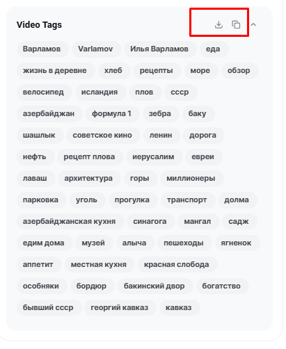 В разделе с ключевыми словами можно один раз нажать на стрелку сверху, чтобы скачать ключевые слова в формате CSV. Эта функция доступна только в версии vidIQ Premium. Если вы не используете Premium, эта возможность недоступна. Чтобы приобрести vidIQ Premium, нажмите здесь. Премиум-версия предлагает много подобных инструментов для экономии времени. Если вы используете бесплатную версию, нажмите один раз на значок копирования рядом со стрелкой, чтобы скопировать все ключевые слова.